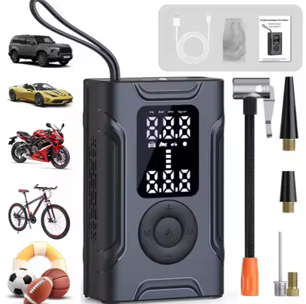 A portable tire inflator with a maximum pressure of 150 PSI is a compact yet powerful tool designed to quickly inflate car tires, bike tires, and even light truck tires. Its high-pressure capability also makes it perfect for inflating sports equipment like basketballs and soccer balls. Despite its small size, it delivers reliable performance and convenience, making it an essential tool for both roadside emergencies and everyday use.